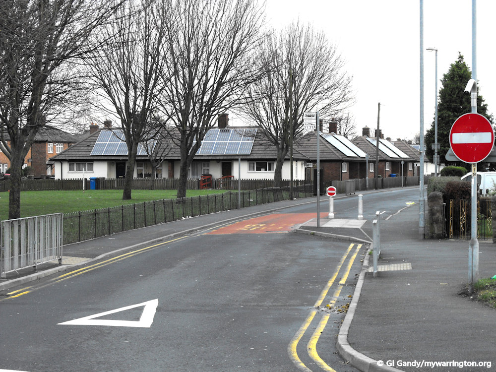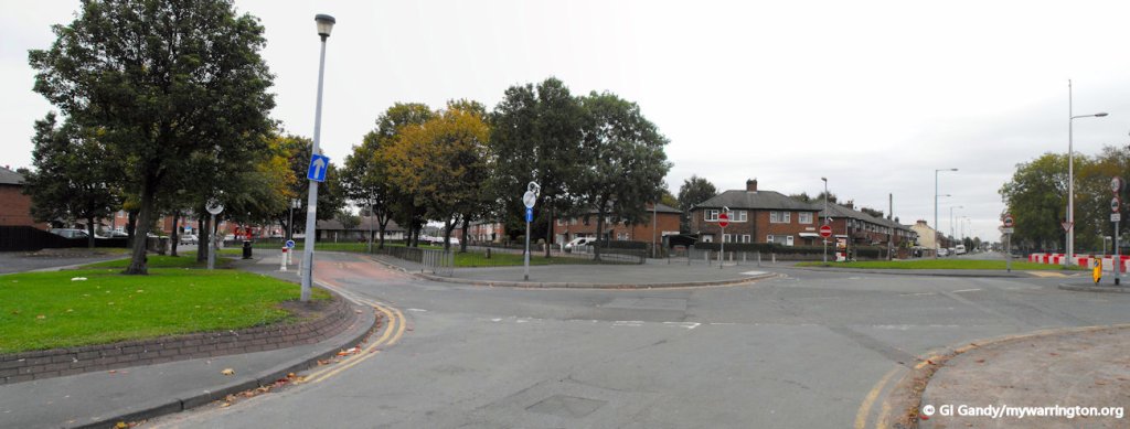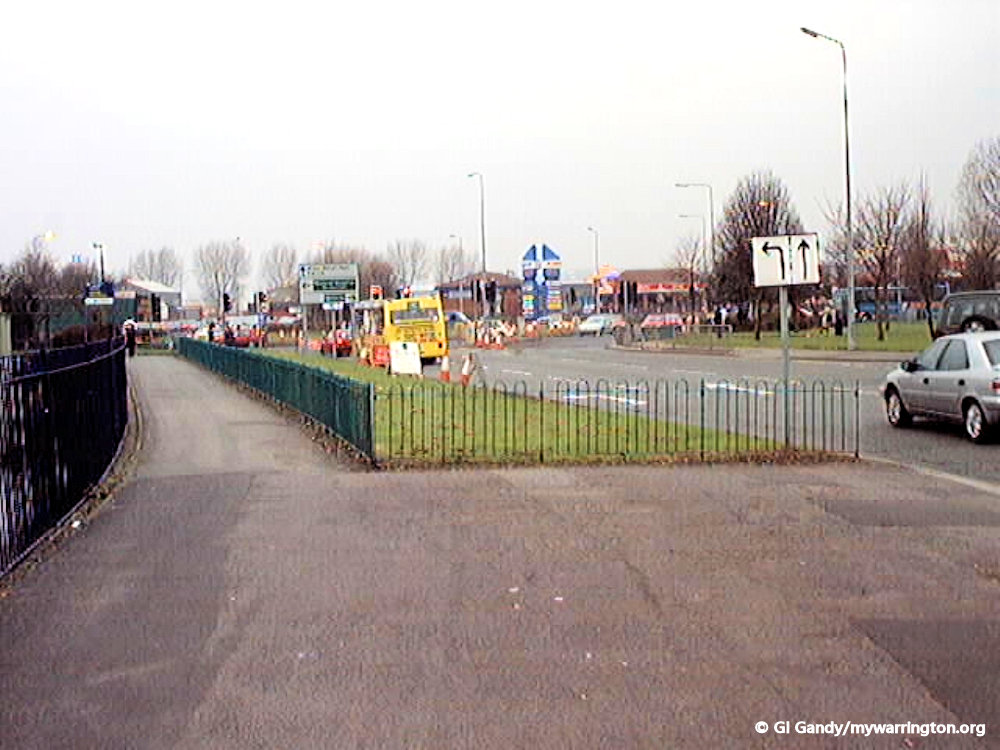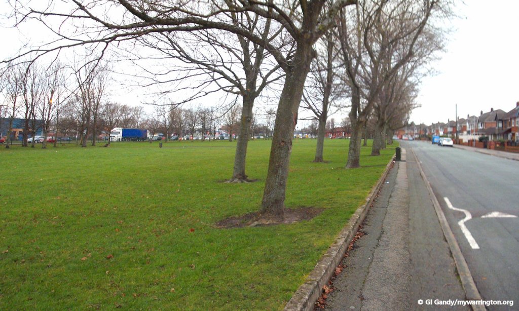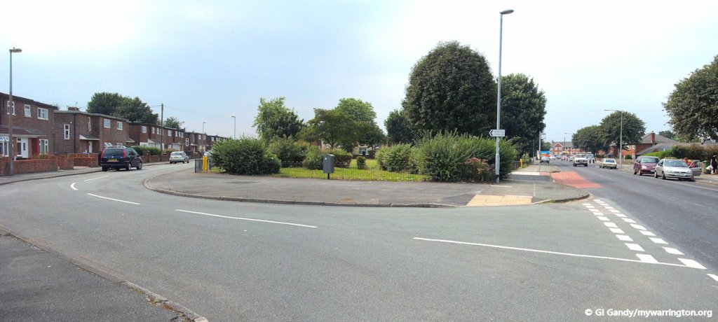 The original section of Winwick Road used by vehicles before the dual carriageway was built on the opposite side of Longford Park to the left as we look.