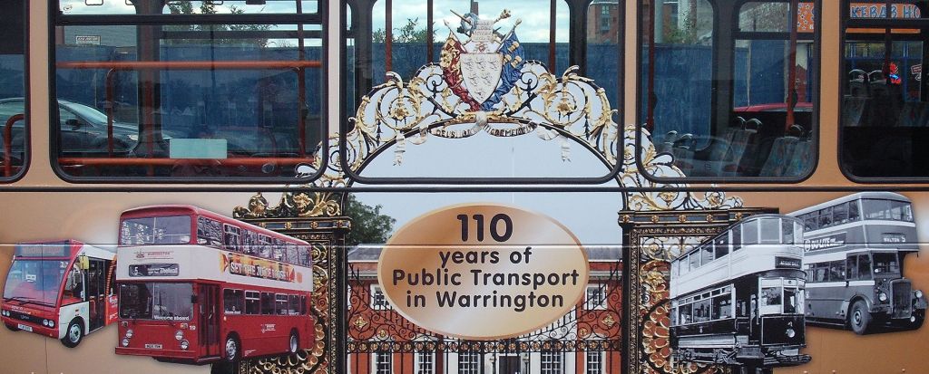 One of Warrington Borough Transport buses was repainted with images of their buses as part of the 110 year celebrations in 2012.