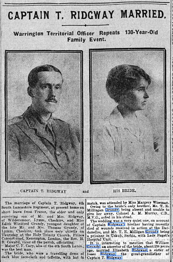 My thanks to Alan Williams at Lymm Heritage Centre for helping to locate information on the two families. Read a report of inter-marriage between the families in the photo, right.