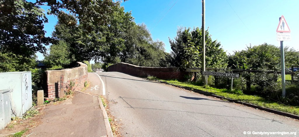Back out to Oughtrington Lane for the next photos. Lymm Cricket Club and one of the entrances to Spud Wood are between St Peter’s Church and Lloyd Bridge over the Bridgewater Canal. Spud Wood is my favourite place name in the town and got its name because the plantation was originally a potato field. you can read more about the wood in Warrington Green.