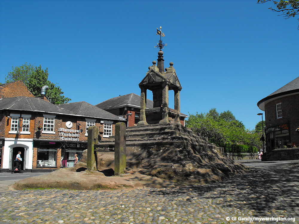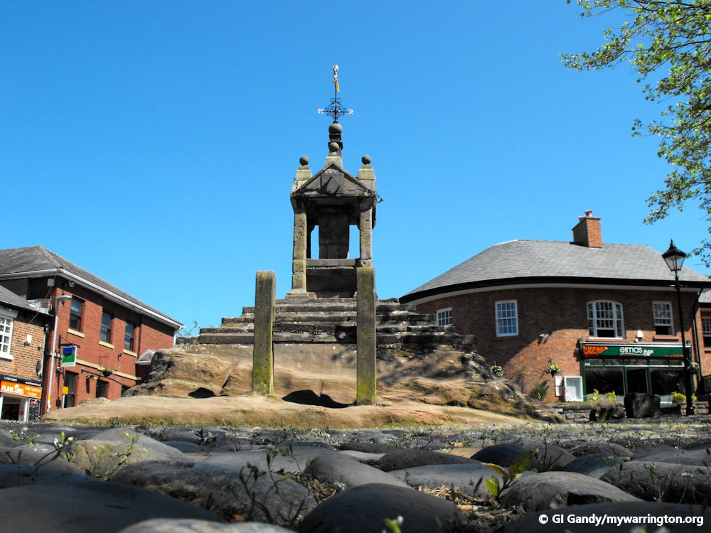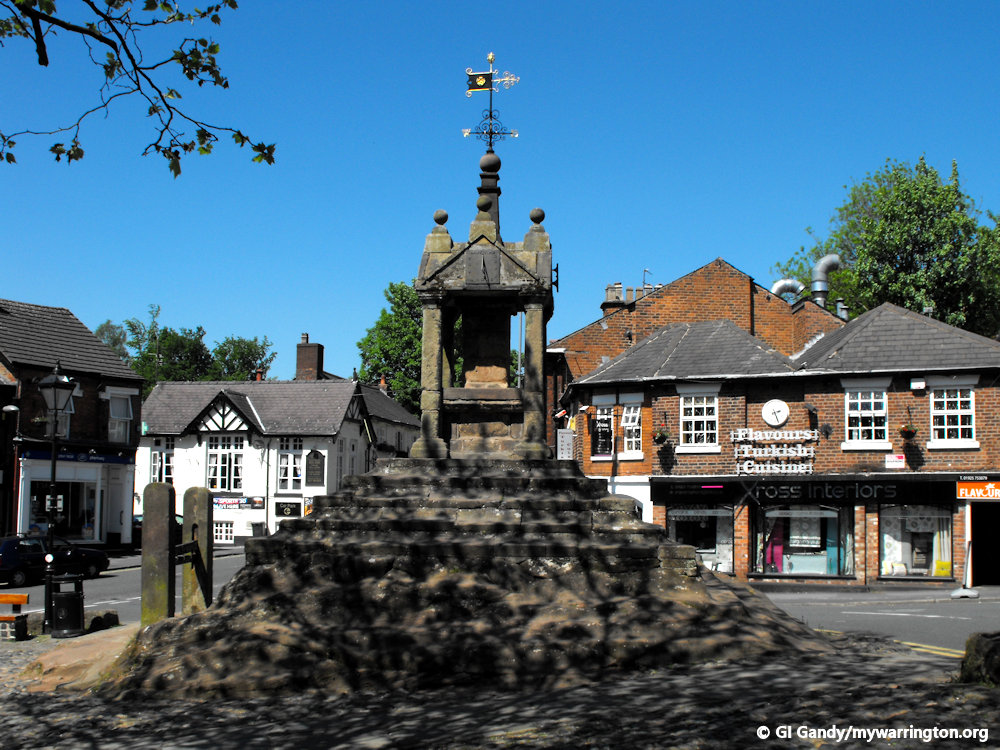 Onto Pepper Street now, passing Lymm Cross on the way.