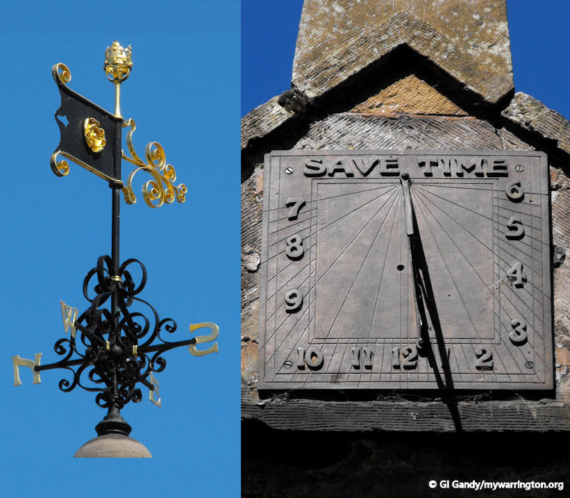 Close-ups of the weathervane and sundial on 25 May 2012