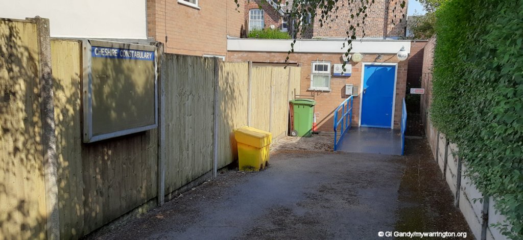 The police station is shown on the late-19th century map. It is still in the same location on Dane Bank Road, but now administered by Cheshire Constabulary.