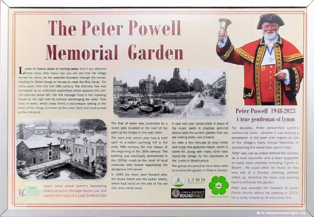 To the right of the Slitten Brook in the photo above is a new memorial garden dedicated to the memory of Lymm town crier Peter Powell, who passed away on 12 January 2023.