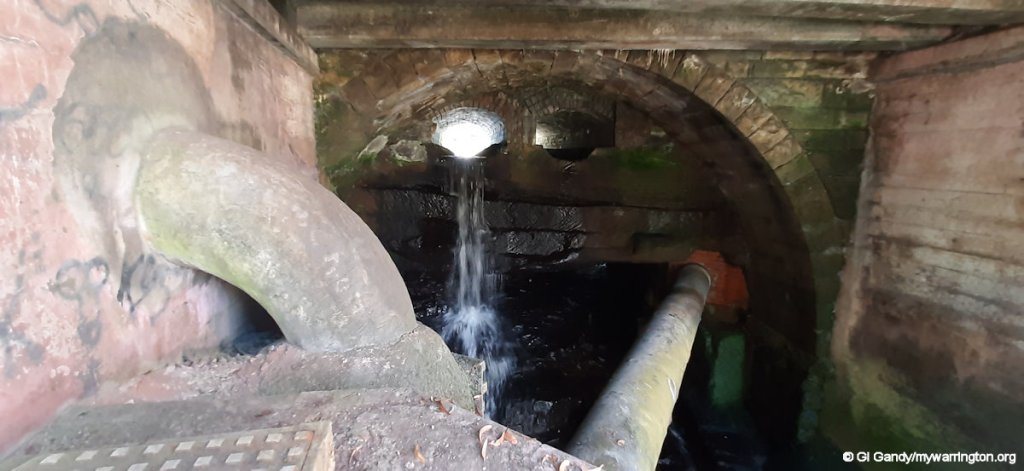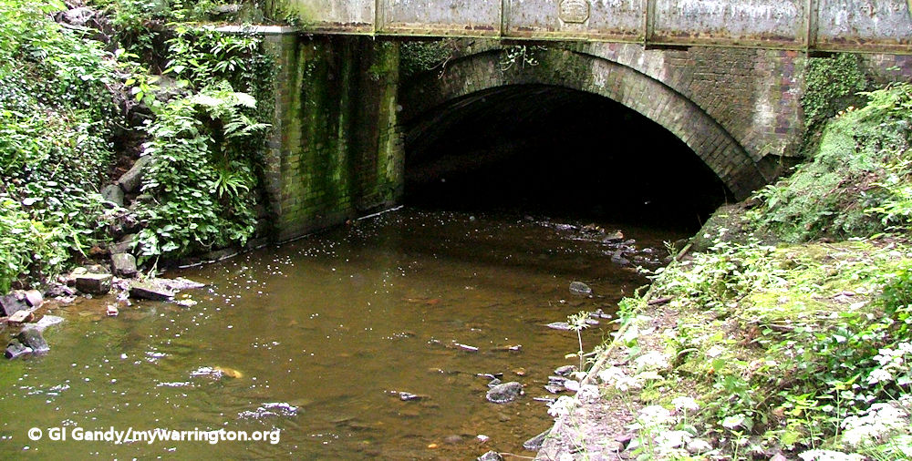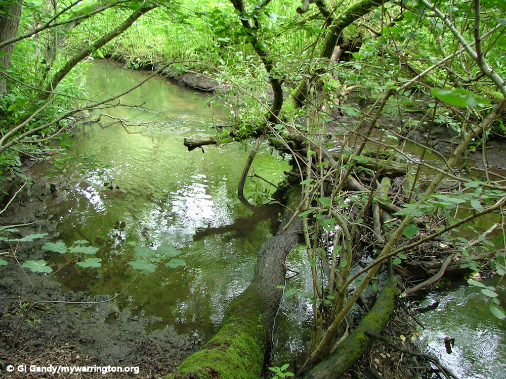 Downstream the water flows under Dane Bank Road and the Trans Pennine Trail. Eventually the stream flows into to the Manchester Ship Canal three-quarters of a mile to the north. From Slitten Gorge to the Ship Canal it is known as Sow Brook.