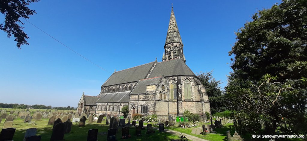 The land on which the church was built was paid for by Thomas Ridgway, a tea merchant who was born in the village in 1802. You can still buy Ridgway tea today though it is now part of the Typhoo group. Read more at The Lymm Archive.