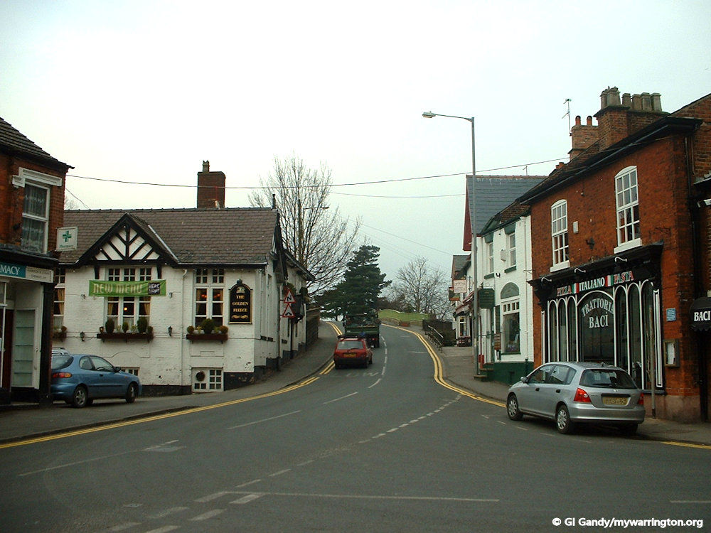 The A56 also passes through the village, connecting the nearby town centres of Warrington and Altrincham with a regular bus service which now links to Manchester Airport in a journey operated by Warrington’s Own Buses.