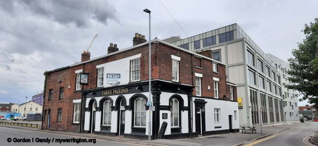 The Three Pigeons pub on Tanners Lane. The platform for the railway station is now occupied by the white office block behind the pub. The line itself was a single track running along the right side of the pub. It is said that a small window in the pub served as the ticket office, but this cannot be verified.