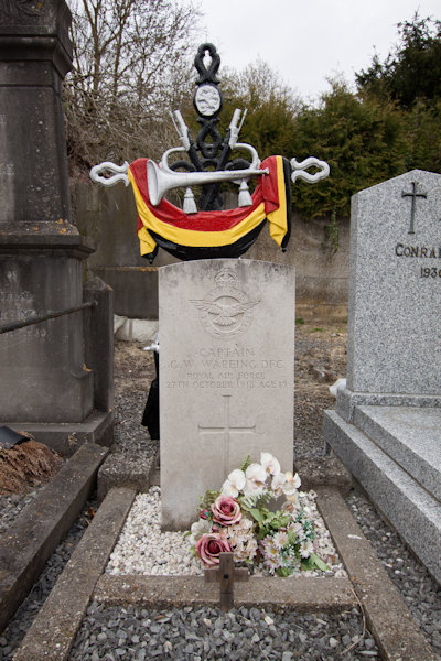 On 27 October 1918 Wareing was killed when he was shot down by a Fokker D.VII flown by Leutnant Josef Raesch of Jasta 43. He is buried in the churchyard of Église Sainte-Marie-Madeleine, Rumillies, Tournai, Hainaut, Belgium, where his is the only Commonwealth War Grave.