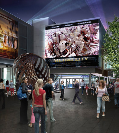 Central to the development was a landscaped public square where people could meet and watch a big screen or enjoy the experience of alfresco dining at one of the many restaurants.