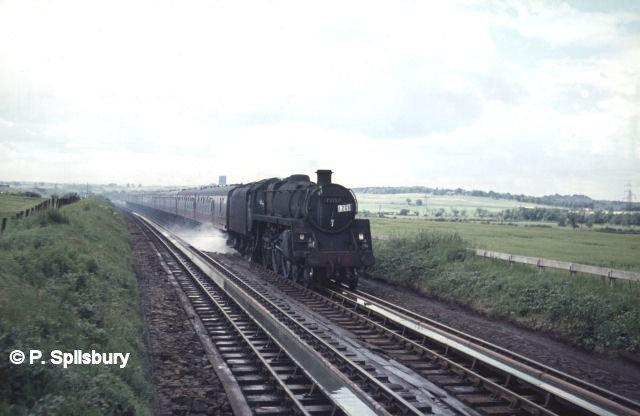 BR 73157 at Moore Troughs. The troughs enabled water to be picked up by a scoop as the train travelled along the track to save time at stations. Who can forget The Royal Train episode of Dad’s Army?
