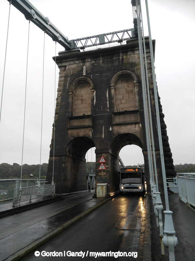 Telford’s suspension bridge with the railway bridge to the right of it. Image by Mick Knapton is used under Creative Commons licence.