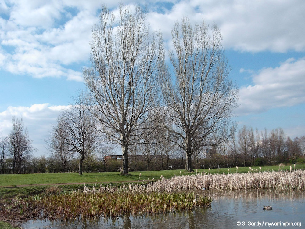 Brickfield Park on Orford Lane occupies the site of claypits, which were used to make bricks for the construction industry. The land was known as Orford Recreation Ground in the 19th century, which also featured a fustian cutting factory.