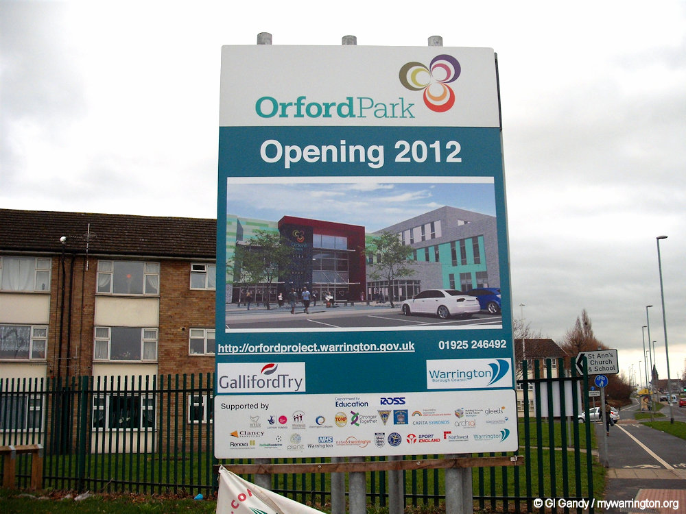On waste land between the Orford Park and Winwick Road (a former landfill site) the £30m Orford Jubilee Neighbourhood Hub project, providing community and sporting facilities, opened in May 2012. It is known by a shorter name, Orford Jubilee Park, which includes a new swimming pool (replacing the one at Fordton Leisure, which was demolished in June 2012).