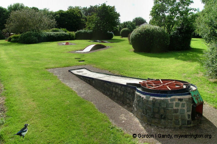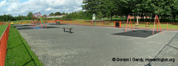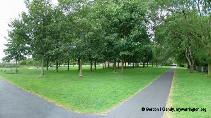 New paved paths were installed to create a route for pedestrians and cycles between Winwick Road, Hallfields Road and School Road. A pond was added at the northern edge of the park. The original main area in the southeast of the park was updated; it now boasts a skate park, children’s playground, bowling green, ball court and football pitches.