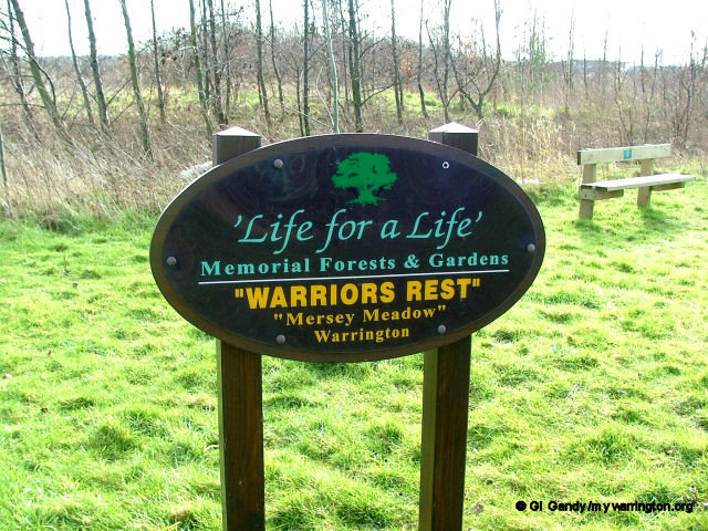 On the Trans Pennine Trail in west Warrington you will come across a new memorial forest and gardens called Mersey Meadow, operated by ‘Life for a Life’. Life for a Life is a not for profit, non-denominational, registered charity (Reg No 1096422) that offers you the chance to commemorate your loved ones by planting memorial trees and installing memorial benches in one of thirty woodland locations across the United Kingdom. Four types of trees are planted: Silver Birch, Mountain Ash, Scots Pine and English Oak. The work supports hospices and other healthcare organisations nationwide.