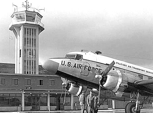 Airfield control tower and MATS Facility 1954. MATS was the Military Air Transport Service. (Imaged under Creative Commons licencing)