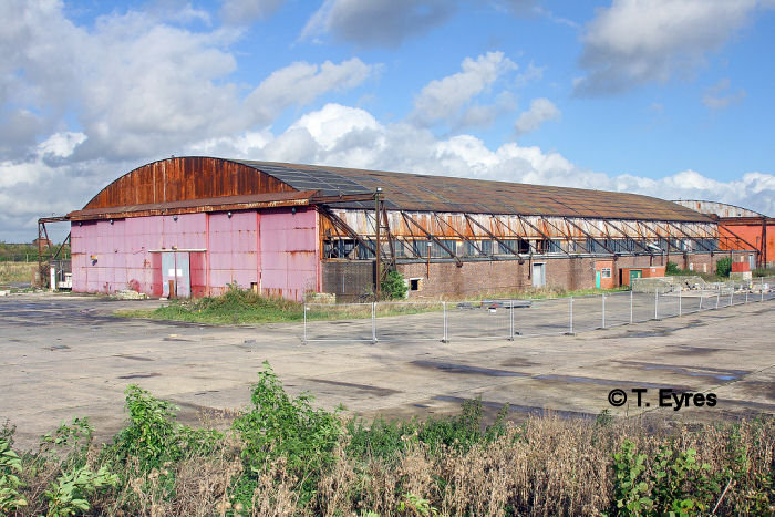 All the buildings apart from a few aircraft hangars and old storage bunkers on the north side of the M62 have been demolished. The remainder were scheduled for demolition during 2008 (see later). Some of the World War II aircraft hardstands, part of the old airfield perimeter track, and the northwest end of a secondary runway exist.