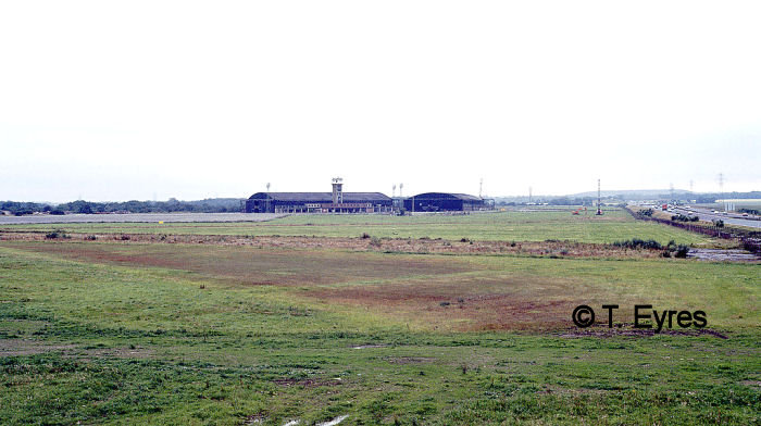 The low buildings at the front were the arrival lounge. The pile of rubble in front is the remains of the demolished WW2 control tower. The wider view (above, right) is just to show the westbound carriageway of the M62. History lesson over. Well nearly…