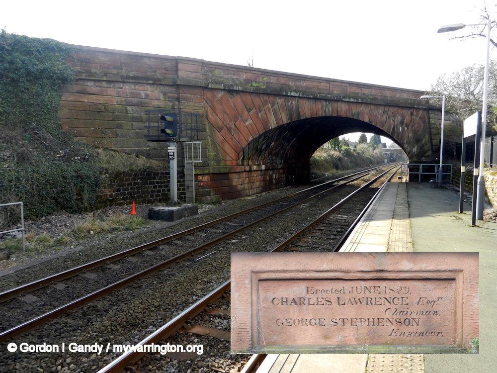 1830 also saw the grand opening of the skew bridge in Rainhill over the Liverpool and Manchester Railway. The bridge was the first to cross any railway at an angle. It required the structure to be constructed as two flat planes (overlapping in this case by 6 ft (1.8 m)) between which the stonework forms a parallelogram shape when viewed from above.