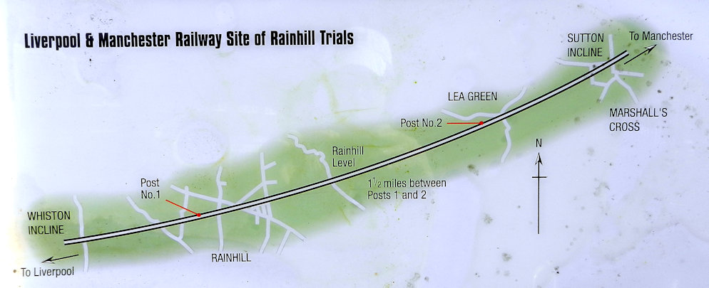 The length of the L&MR that ran past Rainhill village was straight and level for over 1 mile (1.6 km) and was chosen as the site for the Trials. The locomotives were to run at Kenrick’s Cross, on the mile east from the Manchester side of Rainhill Bridge.