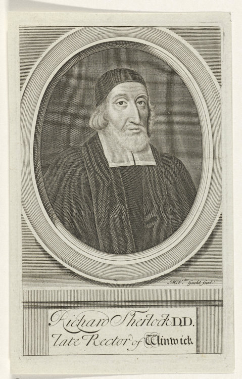 Sherlock was born at Oxton, then a village in the Cheshire peninsula of Wirral, on 11 November 1612, and was baptised at Woodchurch on 15 November. His father, William, a small yeoman, died while Richard was still young, but his mother gave him a learned education. (Note that alternative sources suggest Sherlock’s father may have been John Sherlock; the matter is of some interest in establishing Sherlock’s relationship with Thomas Wilson, Bishop of Sodor and Man).