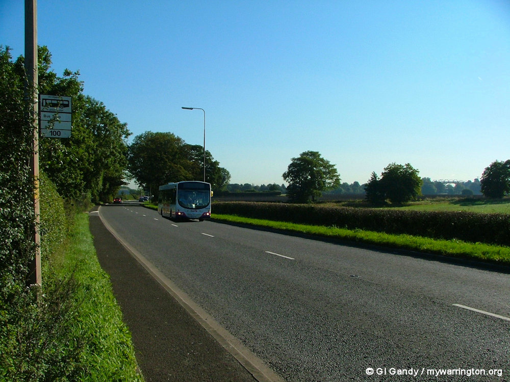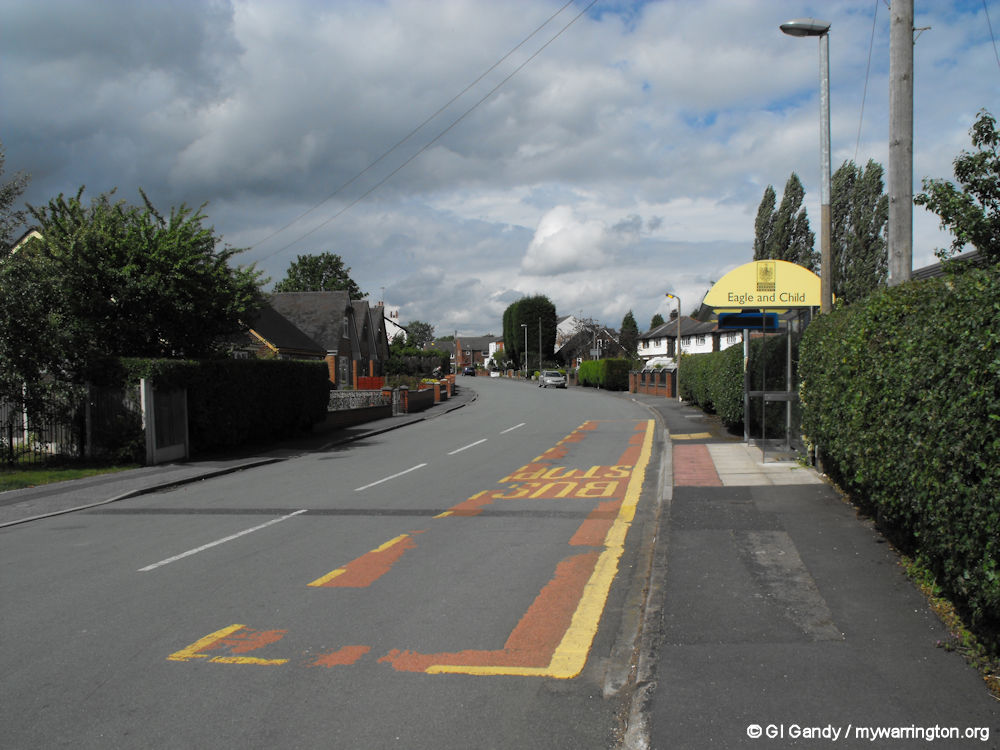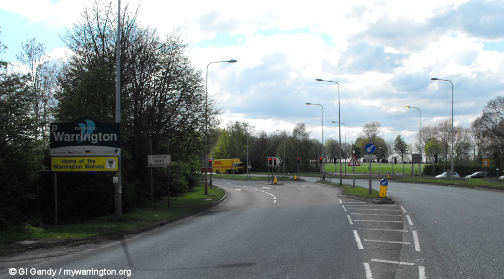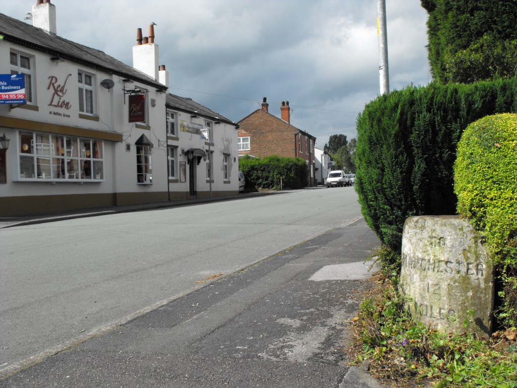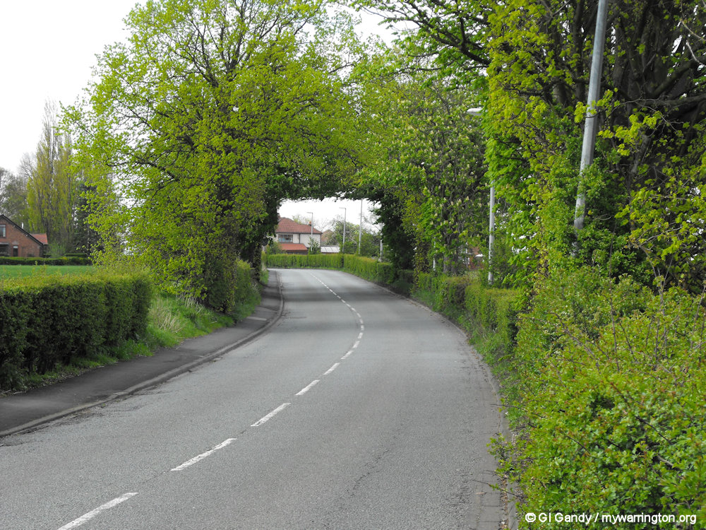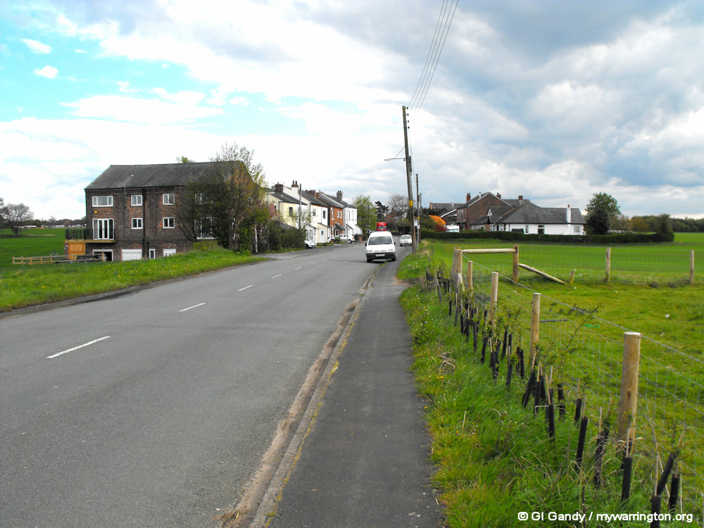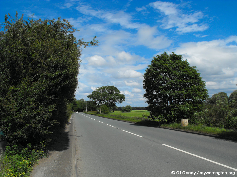 At Hollins Green, Manchester Road has two sections: the main east-west bypass and the carriageway through the village.