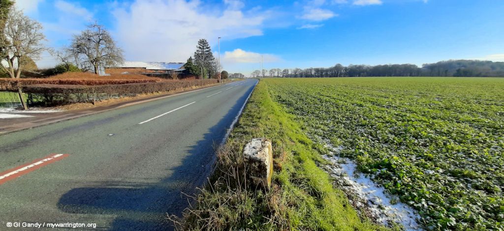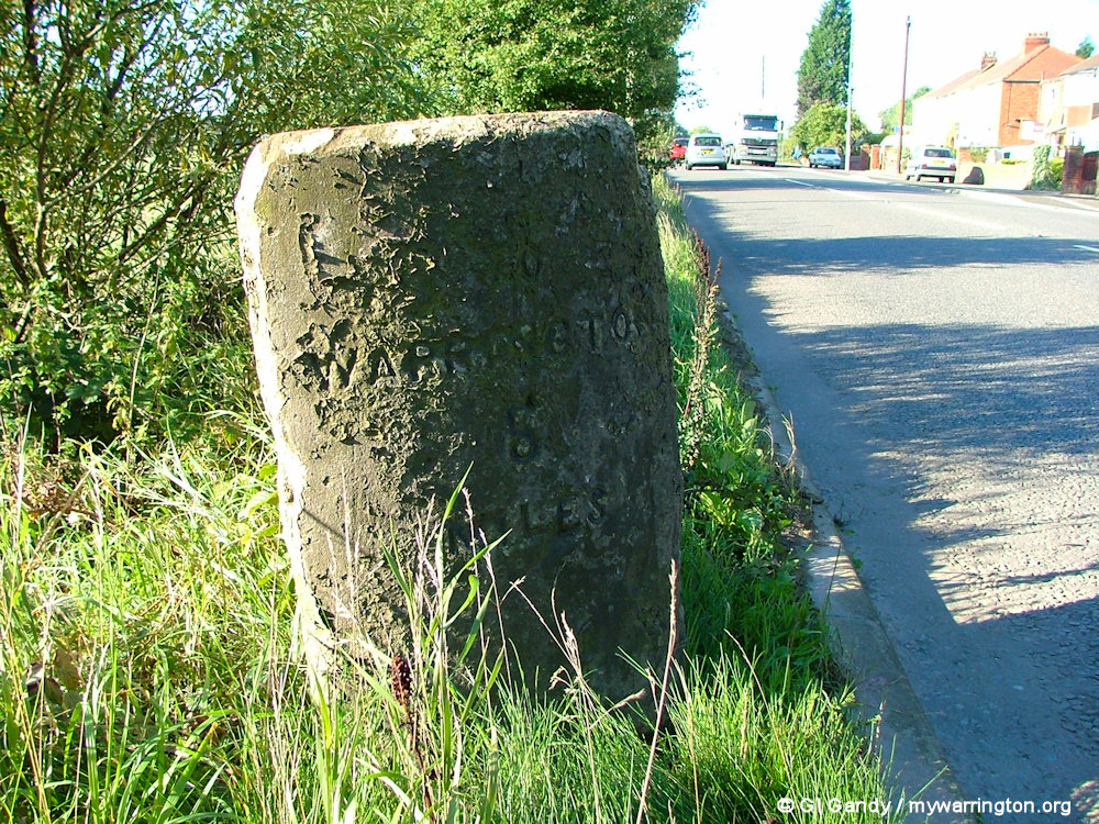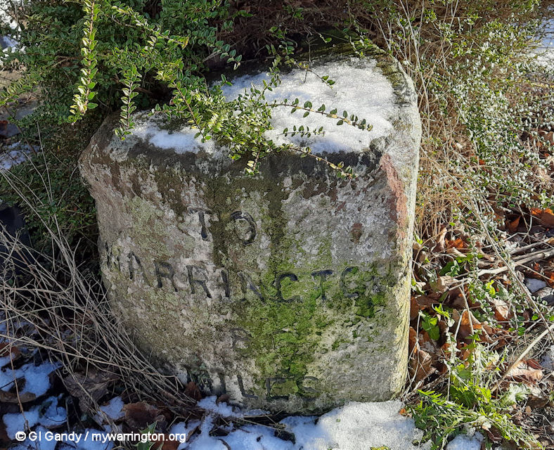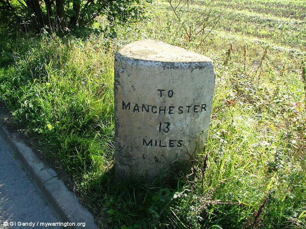 There are two milestones in Rixton on Manchester Road. A third is on Manchester Road in the Hollins Green area of the district. All three are Grade II listed and were erected by the Warrington & Lower Irlam turnpike trust in the 19th century. Manchester Road became a turnpike road in 1753.