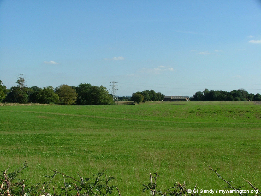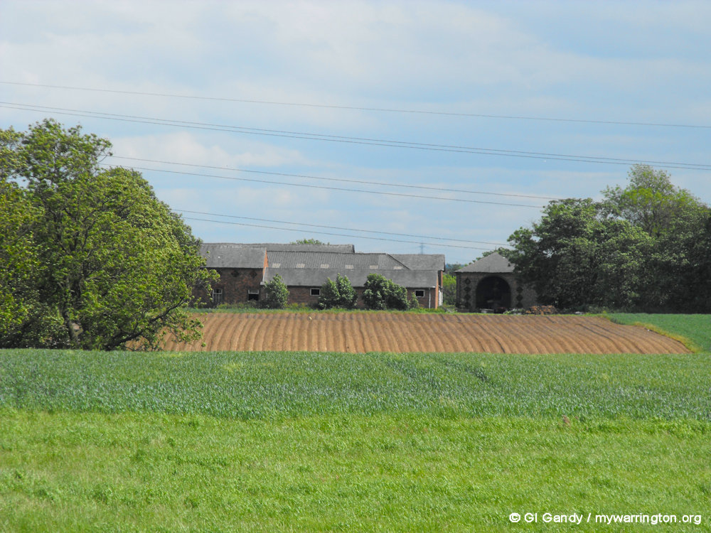 A long-distance view to Rixton New Hall Farm from Manchester Road on 28 May 2011.