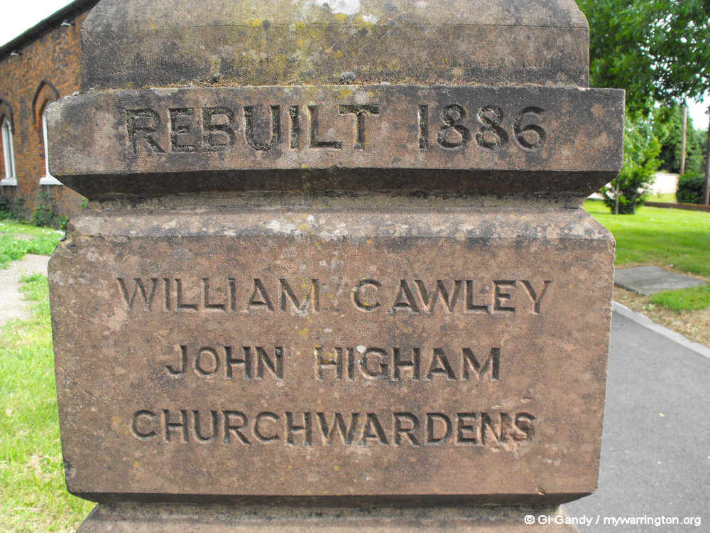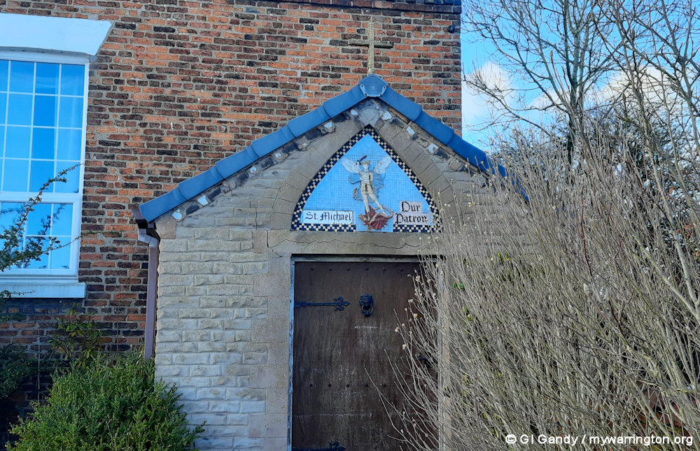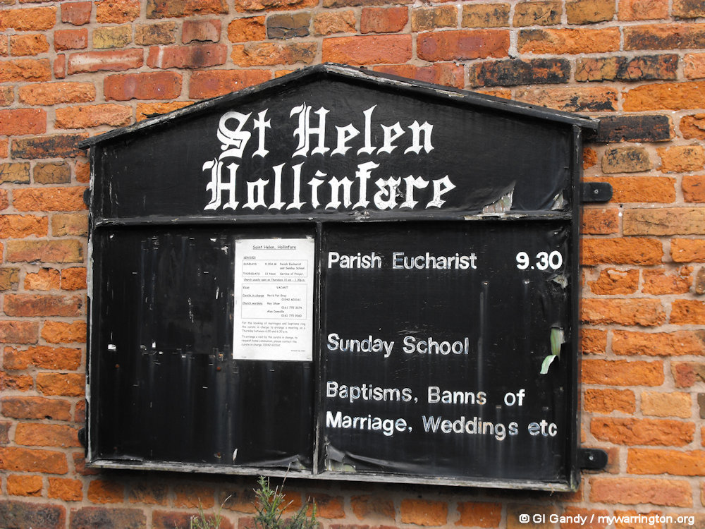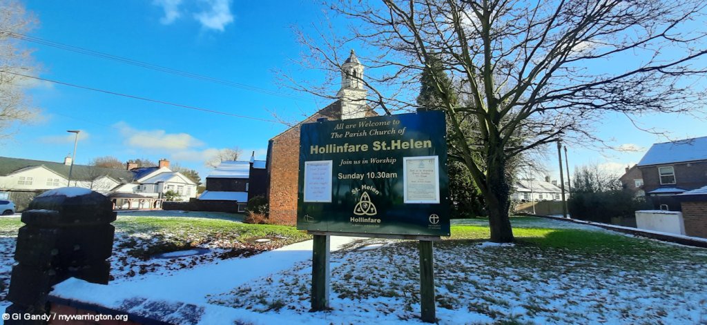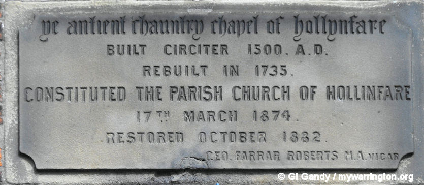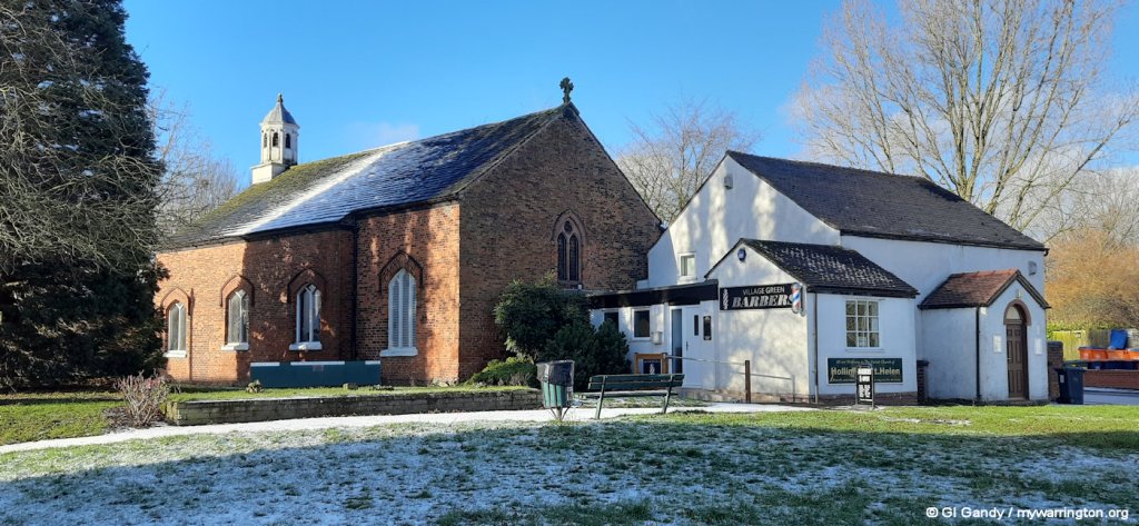 The Mascy family lived at Rixton (Old) Hall and survived in the village until the 18th century. The chapel was rebuilt in 1735 and constituted the Parish Church of Hollinfare in 1874. The church is now dedicated to St Helen and was restored in 1882.