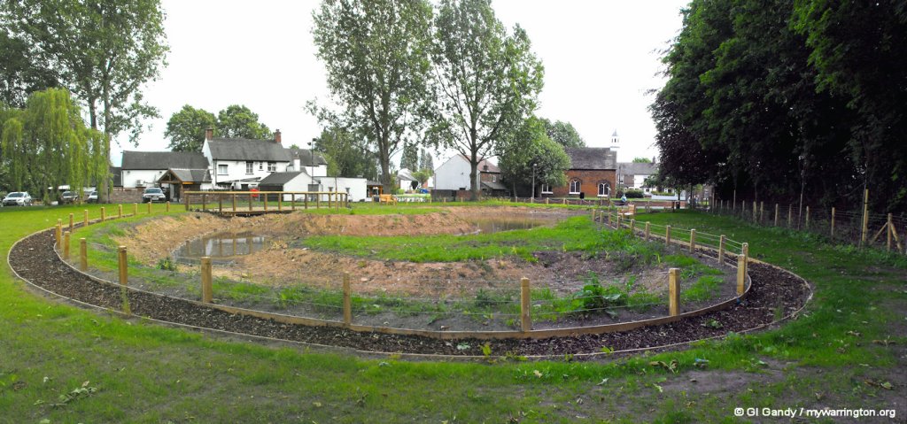 Behind the Black Swan pub is a village pond. I first visited it during construction and went back again when it was completed.