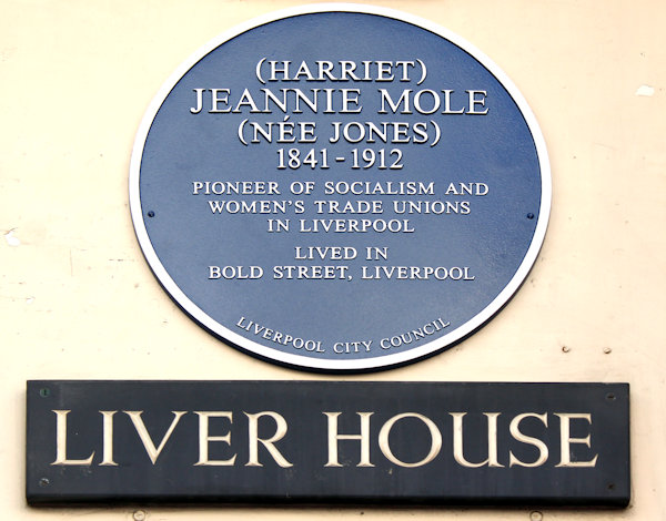 Plaque to Jeannie Mole on the front wall of 96 Bold Street, Liverpool. Source: Rodhullandemu