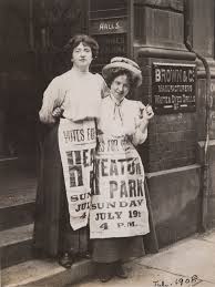 WSPU Suffrage Women, Patricia Woodlock and Mabel Capper, Advertising Meetings, July 1908. Source: Museum of London, ID. no. NN22779.