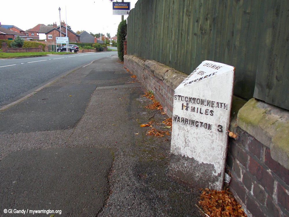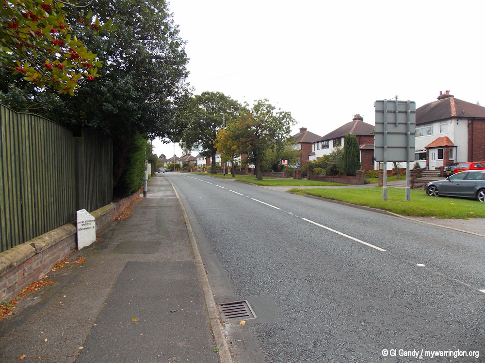 As one emerges into the Warrington Road, there is a private road up to Appleton Hall, commonly known as Pewter Spear. Now, we know that a spear of pewter would not be useful in any way. It would be too soft.