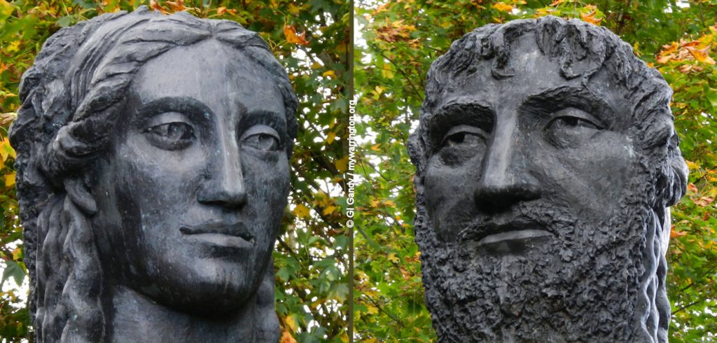 The two faces of Janus in a statue in Pewterspear Green park alongside London Road by Owen’s Corner roundabout. Photo taken 1 October 2013.