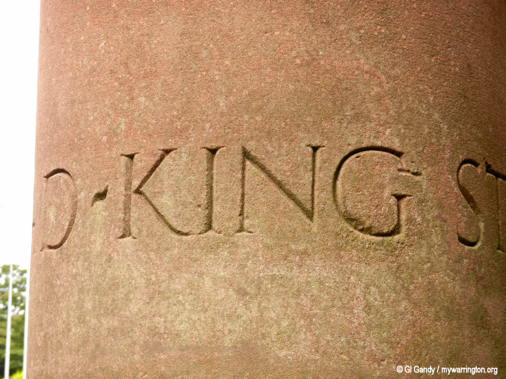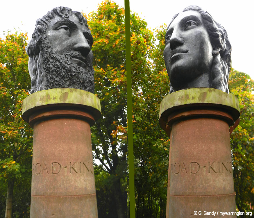 The public park at Pewterspear Green is laid along part of the route of King Street. It features a statue of Janus, the Roman god of beginnings, endings, gates and transitions.
