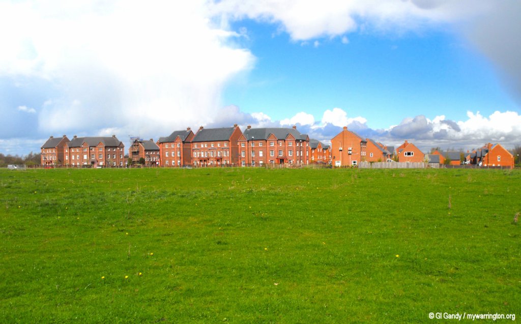 Views across Pewterspear Green with new housing in the district (10 April 2012).