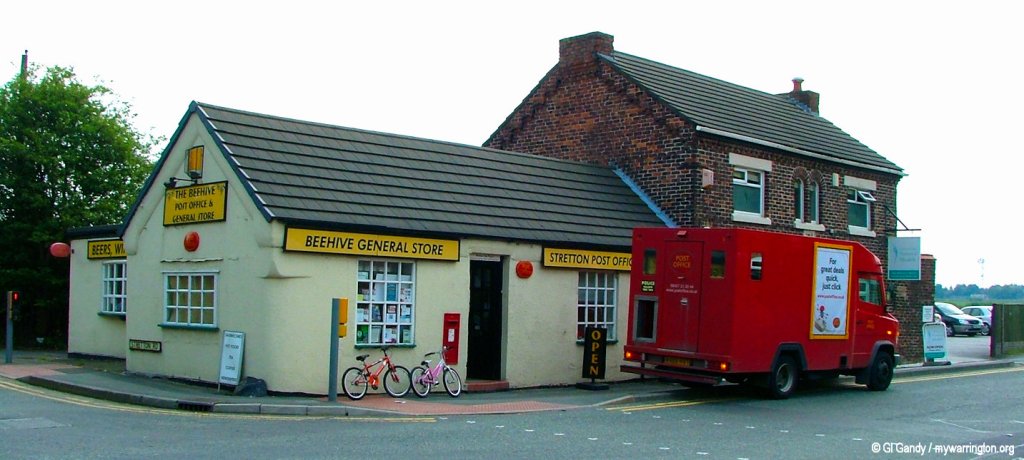 The post office was originally a greengrocers shop called The Beehive and still known as Beehive General Store and Post Office. According to the Stretton History Website there were houses on the site before 1846. The property next door was built in 1885. Notice the THL in the datestone. THL refers to Thomas Henry Lyon, the owner of Appleton Hall and lord of the manor.
