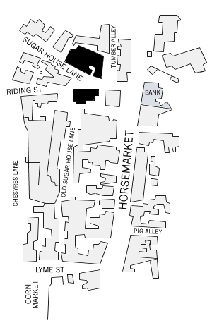 The first “clue” was the discovery of a fraction of a map of Warrington – a tracing of a central portion of the town from Wallworth and Donhavand’s map, made in 1772. It was a surveyor’s map of weirdly irregular buildings in the Horsemarket Street district, and at the foot of that street were the inked-in outlines of two buildings labelled “Sugar Houses.”