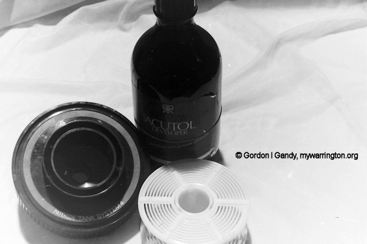 Here is a Patterson developer, film spool and tank used to process the film. If you wish to view it, there is a video on YouTube showing how to develop a film using similar equipment. The video is about 18 minutes in length and although some things were slightly different to what I remember, it still brought back happy memories for me after 36 years! And when you’ve watch the video you’ll be saying thank goodness for digital! Great days though.