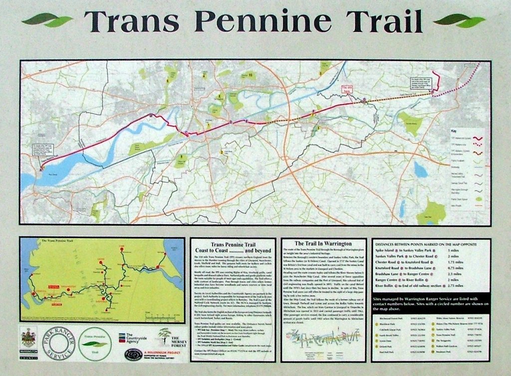Take a trip along the Trans Pennine Trail in Warrington and you’ll experience a cross section of the areas countryside and cultural heritage. From the Borough’s western boundary the Trail follows the Sankey Canal towpath to Sankey Valley Park then crosses the River Mersey and Arpley Meadows.