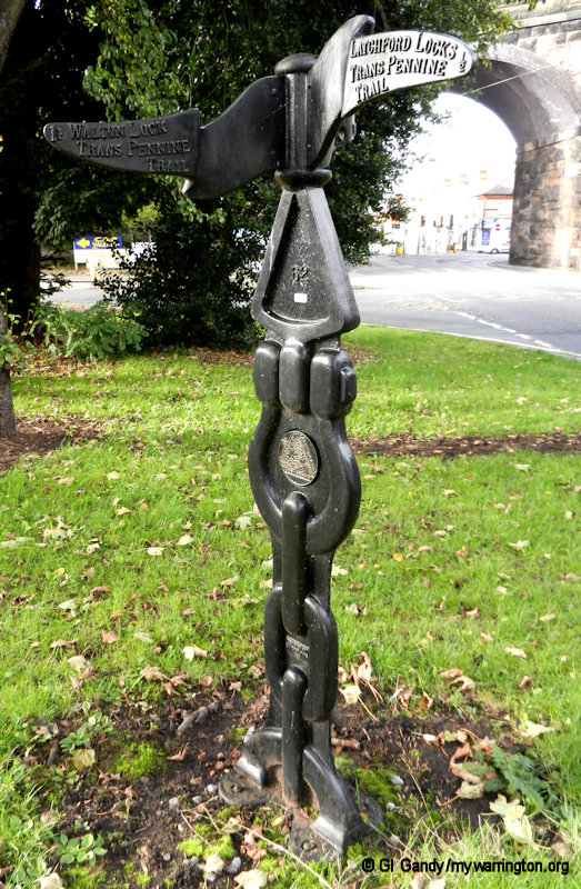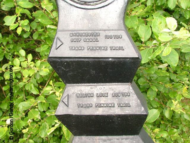 There are four “Millennium Mileposts” along the Warrington section of the Trans Pennine Trail. Millennium Mileposts can be seen at many locations along the 6,500 miles of the National Cycle Network (of which the TPT is a part), which is being developed by Sustrans. Each milepost gives route information and incorporates a different theme within the sculpture.