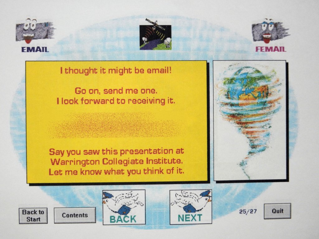 During my time at college studying for my GNVQ Advanced IT course, we were tasked with creating a Powerpoint presentation on how to use email. The slideshow below is my assignment. I have pixeled out any email addresses for security reasons, but apart from that, it is as presented originally. Oh, it was 24 years ago, so I think technology has moved on a bit since then, although the basics will still be the same.