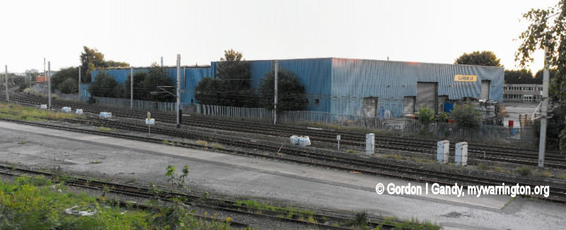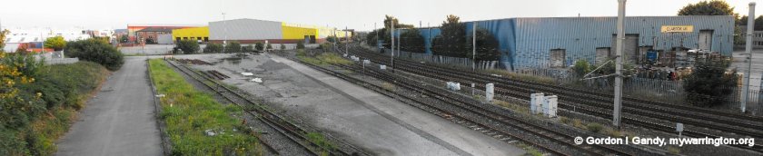 The second, wider shot shows the area alongside Dallam Lane which formed part of the Warrington and Newton Railway.