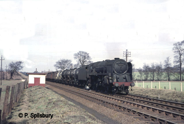 46517 at Winsford Junction (LNW) in the exchange sidings opposite the signal box on the Cheshire Cat Tour on 14 May, 1966. The tour was nicknamed “The Cowpats of Cheshire”. The train has just come off the (now closed) Over & Wharton branch.