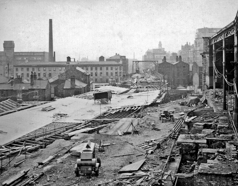 Construction of platforms 13 and 14 in 1959. Upon opening the station was renamed Piccadilly. It is now where trains to and from Warrington Central arrive and depart. Image by Ben Brooksbank is used under Creative Commons licence.